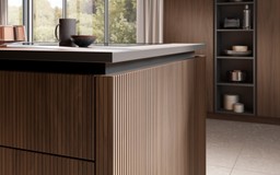 The sensuality of touch and texture is a key theme for 2023, and to meet this growing demand, Häcker has released visually outstanding and elaborately manufactured grooved fronts in light oak, black oak, and walnut named AV6023. This exclusive design has an extravagant look that creates a striking first impression due to the high material input and elaborate manufacturing process, combined with a high degree of craftsmanship. Due to its nature, the grooved front is available exclusively without handles, which is a perfect choice for today’s modern kitchens. The new wood finishes offer a high degree of diversity and look stunning when combined with bold, flat fronts or glass cabinetry. This matte material adds a elegantly warm feeling and visual interest to any kitchen design.