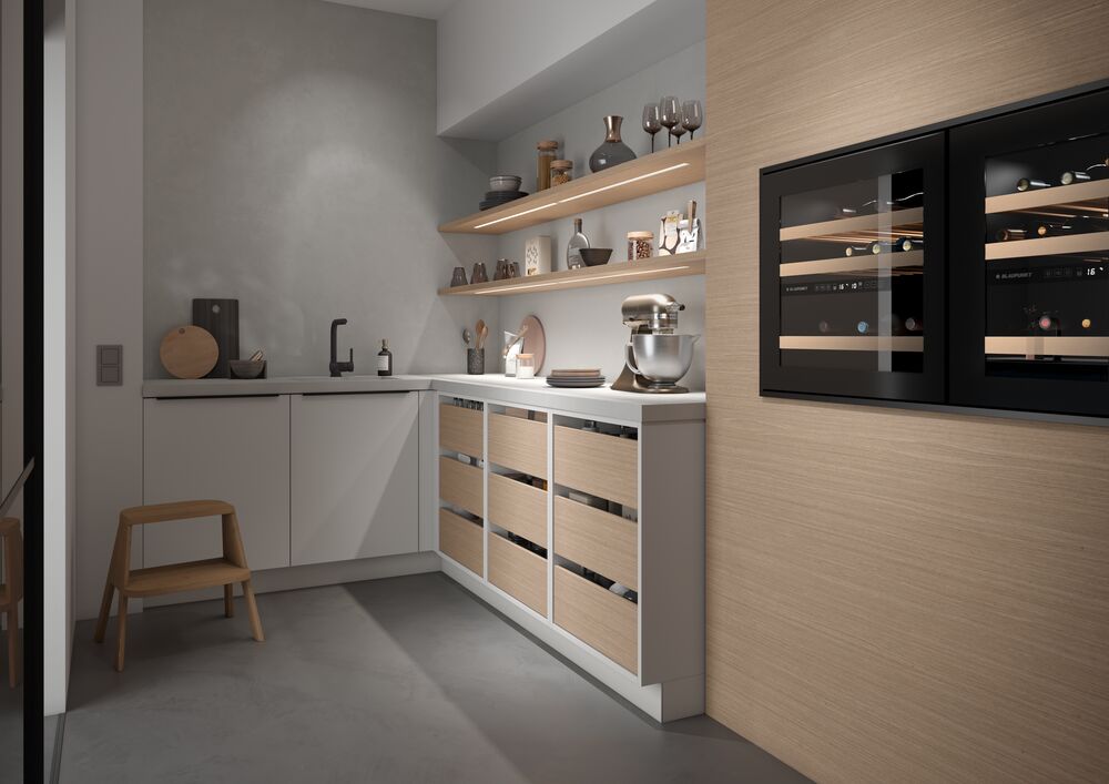 Gone are the days of cramped, hard-to-reach pantries. In 2025, upgraded pantries, ranging from butler’s pantries to full-scope sculleries are becoming essential for larger kitchens. These spaces provide a perfect solution for storing bulk items, small appliances, and cleaning supplies while keeping the main kitchen area clear. Open shelving, pull-out drawers, and smart storage systems make it easier to organise and access items, creating a more functional and tidy space.